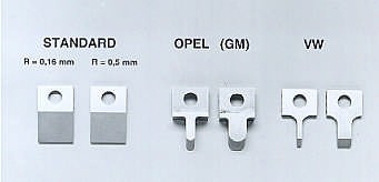 耐磨測試儀圖 所示為一些測試時所用的鏨子(標準型,通用汽車選用型,大眾汽車選用型)